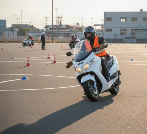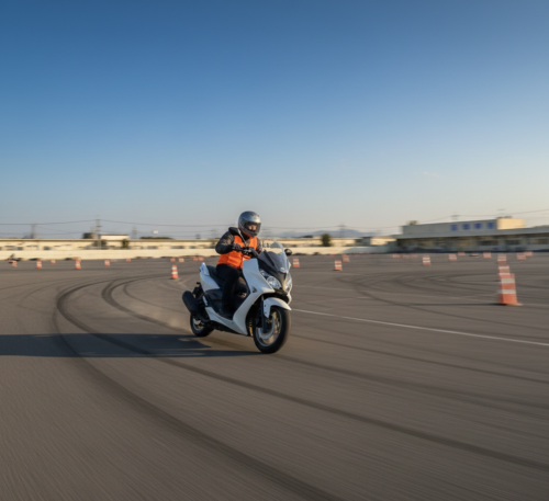 ビッグスクーターは安定感が抜群なので、操作が楽になった分、「体を傾けて曲がる」感覚を掴む練習にぴったり。